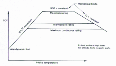 - "Gas Turbine Performance" Walsh and Fletcher ISBN 0-632-06434-X,section 7.8 "Ratings and control", fig718"Typical rating curves flight engines"