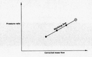 من خلال تعريف السرعة المصححة للضاغط، و التي يرمز لها، يجب أن تظل هذه السرعة ثابتة أيصا عند نقطة لا بُعدية معطاه على مخطط هاسك.