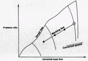 اضافة لذلك، فإن مقاومة التدفق خلف الضاغط تتحدد بمساحة فوهة التربينة ومساحة الخروج للفوهة الدافعة.