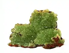 تجعل البلورات الملونة باللون الأصفر إلى الأخضر الليموني اللامع مع التألق المميز للدروز من الأداميت معدن مفضل بين جامعي المعادن. ويوجد المعدن في مابيمي والمكسيك واليونان؛ وكاليفورنيا ويوتا في الولايات المتحدة.