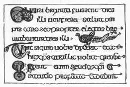 احتوى «كتاب آرماغ» وهو مخطوطة مذهبة تعود للقرن التاسع مكتوبة بالأساس باللاتينية، على نصوص مبكرة متعلقة بالقديس باتريك وأقدم النماذج الناجية من الإيرلندية القديمة. يُعد هذا الكتاب أحد المخطوطات المبكرة التي أنتجتها كنيسة جزيرية ويحتوي على نسخة شبه كاملة من العهد الجديد. كان الكتاب عملًا لناسخ يُدعى فيردومناش الآرماغي (توفي عام 845 أو 846). كتب فيرودمناش الجزء الأول من الكتاب عام 807 أو 808 لوريث باتريك تورباش (كوماربا). كان الكتاب أحد الرموز لمكتب أسقف آرماغ.[6]