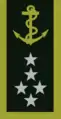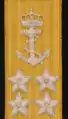 غالباً ما تتضمن شارة رتبة الأدميرال أربعة نجوم أو ما يماثلها من شعارات، أو ثلاثة أشرطة على شريط عريض، ولكن هناك العديد من الحالات التي لا تتضمن فيها الشارة أربعة نجوم أو شعارات مماثلة.