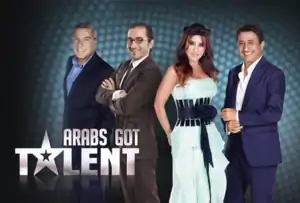 | التعليق | أعضاء لجنة التحكيم الأربعة إلى جانب شعار المسابقة |