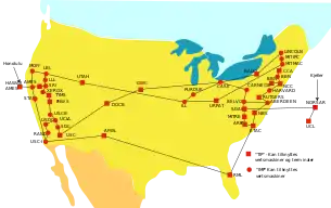 - جامعة كاليفورنيا في لوس أنجلوس (UCLA): حيث أنشئ ليونارد كلينروك مركز قياسات للشبكات باستعمال حواسب من سلسلة أس دي أس سيغما (SDS Sigma) وتحديداً حاسوب سيغما 7 [35] الذي أصبح أول حواسب تُوصل إلى شبكة الأربانت.