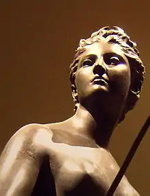 آرتميس[2] أو أرتميس (باليونانية القديمة: Άρτεμις)، بحسب الميثولوجيا الإغريقية القديمة، هي إلهة الصيد والبرية، حامية الأطفال، وإلهة الإنجاب، العذرية، والخصوبة. وتعتبر أرتميس إحدى أهم، وأقوى، وأقدم الآلهة الإغريقية، حيث أنها تنتمي للأولمبيين، أو الآلهة الإثنا عشر. هي ابنة كلا من زيوس، ملك الآلهة، وليتو، وهي أيضًا الأخت التوأم لأبولو (أبولون)[؟].[3][4][5][6] غالبا ما كانت أرتميس تُجسد وفي يدها قوس[؟] وسهام،[7] وكان الأيل وشجر السرو مقدسين بالنسبة لها. وفي فترة لاحقة خلال العصر الهليستني، لعبت أرتميس دور إليثيا، الإلاهة الكريتيّة، التي تساند النساء عند الولادة.