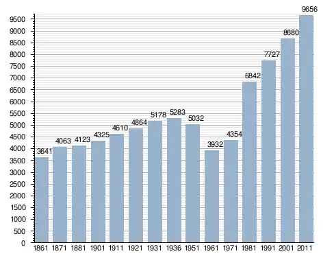 في سنة 1861 بلغ عدد السكان 3٬641 نسمة، وتطور العدد ليصل في سنة 2011 لـ 9٬656 نسمة.