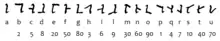 نسخة من الأصفار في أطروحة عن فن الخط (حوالي 1300 م) تُنسب عادةً إلى جون تيلبيري، مع القيم العددية المقابلة لباسينجستوك.