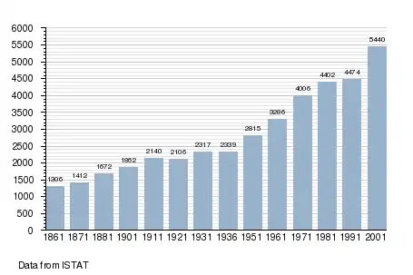 |CitationClass=تم تجاهله (مساعدة) - Superficie di Comuni Province e Regioni italiane al 9 ottobre 2011 — تاريخ الاطلاع: 16 مارس 2019 — الناشر: المعهد الوطني للإحصاء