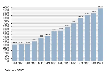 |CitationClass=تم تجاهله (مساعدة) - Superficie di Comuni Province e Regioni italiane al 9 ottobre 2011 — تاريخ الاطلاع: 16 مارس 2019 — الناشر: المعهد الوطني للإحصاء