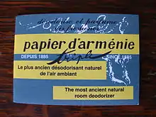 En 1888, Auguste Ponsot, en voyage dans l'Empire ottoman, se rend en Armenie. Il decouvre que les habitants parfument et desinfectent leurs maisons en faisant bruler du benjoin, la resine d'un arbre. De retour en France, il met au point le papier d'Armenie dans son petit labrotoire de Montrouge.