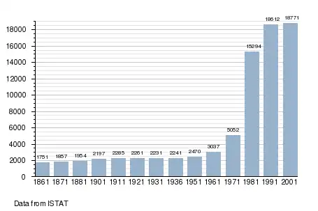 |CitationClass=تم تجاهله (مساعدة) - Superficie di Comuni Province e Regioni italiane al 9 ottobre 2011 — تاريخ الاطلاع: 16 مارس 2019 — الناشر: المعهد الوطني للإحصاء