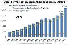 كان هناك حوالي 52,000 حالة وفاة أميركية من جميع الجرعات الزائدة من المخدرات في عام 2015. كان ثلثي تلك الحالات، أي ما يقرب من 33،000حالة، نتيجة تعاطي شبائه الأفيون، مقارنةُ ب 16,000 حالة في عام 2010 و 4000حالة في عام 1999.[3][4] في عام 2016، زادت الوفيات من الجرعات الزائدة عن العام السابق بنسبة 26٪ في كونيتيكت، و 35٪ في ديلاوير، و 39٪ في مين، و 62٪ في ماريلاند.[5] ما يقرب من نصف جميع الوفيات نتيجة الجرعات الزائدة للمواد الأفيونية كانت بسبب تعاطي المواد الأفيوينة الموصوفة طبيًا.[6]