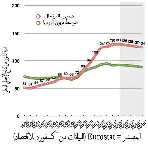 ووفقا لتقرير صادر عن دياريو دي نوتيشياس [127] فقد سمحت البرتغال بانزلاق كبير في الأشغال العامة التي تديرها الدولة وتضخم الإدارة العليا ومكافآت الموظفين الرئيسيين والأجور في الفترة الواقعة بين ثورة القرنفل في عامي 1974 و 2010. وأدت سياسات التعيين الدائمة والدائمة إلى زيادة عدد الموظفين العموميين الزائدين عن الحاجة وقد أسيئت إدارة الائتمان المحفوف بالمخاطر وخلق الدين العام والصناديق الإنشائية والتماسكية الأوروبية خلال ما يقرب من أربعة عقود.[128] عندما عطلت الأزمة العالمية الأسواق والاقتصاد العالمي جنبا إلى جنب مع أزمة الرهون العقارية الأمريكية وأزمة منطقة اليورو وكانت البرتغال واحدة من الاقتصادات الأولى للاستسلام وتأثرت بعمق شديد.