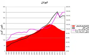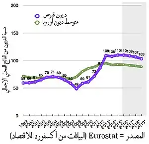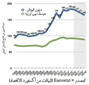 وفي أوائل العقد الأول من القرن الحادي والعشرين كان الاقتصاد اليوناني من أسرع الاقتصادات نموا في منطقة اليورو وكان مرتبطا بعجز هيكلي كبير.[26] ومع تعرض الاقتصاد العالمي للأزمة المالية في الفترة 2007-2008، تعرضت اليونان لضغوط خاصة لأن صناعاتها الرئيسية - الشحن والسياحة - كانت حساسة بشكل خاص للتغيرات في دورة الأعمال. وقد أنفقت الحكومة بشكل كبير على الحفاظ على أداء الاقتصاد وزيادة ديون البلاد وفقا لذلك.