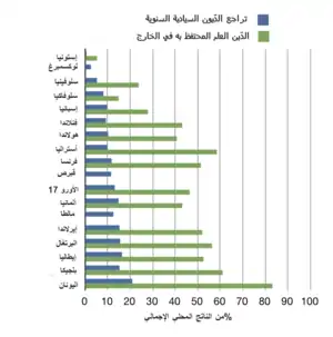 وفي الأسابيع القليلة الأولى من عام 2010 كان هناك قلق متجدد بشأن الدين الوطني المفرط حيث طالب المقرضون بمعدلات فائدة أعلى من عدة بلدان ذات مستويات ديون وعجز وعجز في الحساب الجاري أعلى وهذا بدوره جعل من الصعب على أربع حكومات من أصل ثمانية عشر منطقة اليورو أن تمول المزيد من العجز في الميزانية وتسدد أو تعيد تمويل الديون الحكومية القائمة ولا سيما عندما تكون معدلات النمو الاقتصادي منخفضة وعندما تكون نسبة مئوية عالية من الديون في يد دائنين أجانب في حالة اليونان والبرتغال.