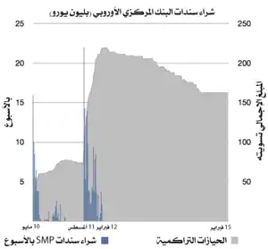ومع تكثيف الشواغل في أوائل عام 2010 وما بعده [6][7] نفذت الدول الأوروبية الرائدة سلسلة من تدابير الدعم المالي مثل صندوق الإنقاذ المالي الأوروبي وآلية الاستقرار الأوروبية كما ساهم البنك المركزي الأوروبي في حل الأزمة عن طريق خفض أسعار الفائدة وتقديم قروض رخيصة بأكثر من تريليون يورو من أجل الحفاظ على تدفقات الأموال بين البنوك الأوروبية وفي 6 سبتمبر 2012 قام البنك المركزي الأوروبي بتهدئة الأسواق المالية بإعلان الدعم غير المحدود المجاني لجميع بلدان منطقة اليورو التي تشارك في برنامج إنقاذ الدولة أو برنامج التحوط من الدولة ذات السيادة من خلال بعض المحصولات التي تقلل من المعاملات النقدية المباشرة.[8]