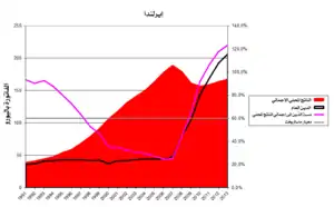 وقد فقدت البنوك الأيرلندية ما يقدر بنحو 100 مليار يورو معظمها يتعلق بالقروض المتعثرة لمطوري العقارات وأصحاب المنازل في خضم فقاعة الممتلكات التي انفجرت في عام 2007. وانهار الاقتصاد خلال عام 2008. وارتفعت البطالة من 4 في المائة في عام 2006 إلى 14٪ بحلول عام 2010 في حين أن الميزانية الوطنية انتقلت من فائض في عام 2007 إلى عجز 32٪ من الناتج المحلي الإجمالي في عام 2010 وهو أعلى مستوى في تاريخ منطقة اليورو على الرغم من تدابير التقشف.[113][114]