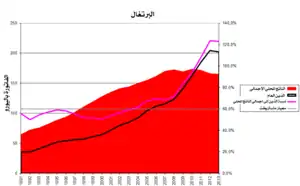 وكانت توقعات ديون البرتغال في سبتمبر 2012 من قبل الترويكا إلى ذروتها في حوالي 124٪ من الناتج المحلي الإجمالي في عام 2014 تليها مسار هبوطي ثابت بعد عام 2014 وفي السابق كانت الترويكا توقعت أنها سوف تصل إلى ذروتها عند 118.5٪ من إجمالى الناتج المحلي في عام 2013 وأن يكون أسوأ قليلا مما كان متوقعا أولا ولكن وصف الوضع بأنه مستدام تماما والتقدم بشكل جيد ونتیجة لذلك من الظروف الاقتصادیة الأسوأ قلیلا أعطيت البلاد سنة أخرى لتخفیض عجز المیزانیة إلی مستوى أقل من 3٪ من إجمالى الناتج المحلي لتحریك السنة المستھدفة من 2013 إلی 2014. وقد تم توقع عجز الموازنة لعام 2012 لينهي عند 5٪. ومن المتوقع أيضا أن يستمر الركود في الاقتصاد حتى عام 2013 مع تراجع الناتج المحلي الإجمالي بنسبة 3٪ في عام 2012 و 1٪ في عام 2013؛ تليها عودة إلى النمو الحقيقي الإيجابي في عام 2014.[132] وارتفع معدل البطالة إلى أكثر من 17٪ بحلول نهاية عام 2012 لكنه انخفض منذ ذلك الحين تدريجيا إلى 10.5٪ اعتبارا من نوفمبر 2016.[133]