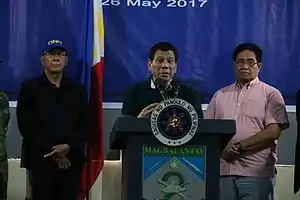 |CitationClass=تم تجاهله (مساعدة) - Morales, Yvette (24 May 2017). "Duterte declares martial law in Mindana". CNN Philippines. مؤرشف من الأصل في 13 يوليو 2018. اطلع عليه بتاريخ 24 مايو 2017. الوسيط