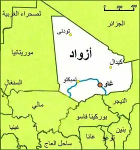 | (بالعربية: دولة أزواد المستقلة) (بالفرنسية: État indépendant de l’Azawad) | ||