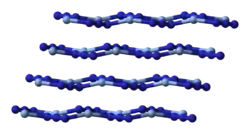 جزء من إحدى الطبقات | ترتيب الطبقات فوق بعضها البعض | التساند من النمط 4 + 2 للفضة Ag+ | التساند من النمط 2 + 1 للنيتروجين في N3− |
