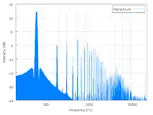 الطيف الترددي لأزيز خط قدرة عند تردد 60 Hz