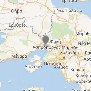 تقع المدينة على ارتفاع (36) م عن مستوى سطح البحر وذلك في منتصف السهل الثرياسي إذ تبعد مسافة 2 كيلومتر عن ساحل الخليج الساروني، ومسافة 5 كيلومتر عن إلفسينا عاصمة آتيكا الغربية، ومسافة 18 كيلومتر عن أثينا عاصمة البلاد.