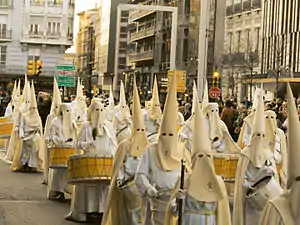 تعرف إسبانيا تقاليد كاثوليكية عريقة تظهر في تطوافات ومواكب أسبوع الآلام ويكون ذروتها في الجمعة العظيمة في مناطق متفرقة من البلاد لكنها تأخذ طابع مميز وخاص في منطقة الأندلس خاصًة في مدينة اشبيلية وغرناطة، والتي تحولت إلى مركز جذب للحج والسياحة المسيحية، المواكب تكون مكونة غالبًا من محفات يحمل كل منها العشرات من الرجال الأشداء يتسابقون في التطوع لنيل هذا التشريف. غطاء المحفة مطرز بالخيوط الذهبية والفضية ومرصع بالأحجار الكريمة. تمثل المحفات حلقات من قصة الصلب والقيامة وتماثيل للعذراء يختلف الواحد عن الآخر في تعبيرات الوجه التي تتراوح ما بين اللوعة والآلم إلى الإستسلام الحزين ثم الرجاء. يتبع المحفات فرق موسيقية يصاحبها أحيانًا صوت أوبرالي ينطلق من إحدي الشرفات المطلة على الطريق.