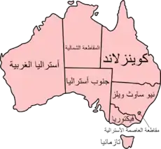 الوسيط|CitationClass=تم تجاهله (مساعدة) - "Background note: Australia". US Department of State. مؤرشف من الأصل في 3 مايو 2019. اطلع عليه بتاريخ 19 مايو 2007. الوسيط