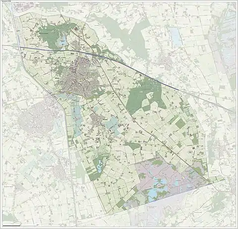 خريطة طوبوغرافية هولندية لبلدية أستن، يوليو 2015، (تقرأ بعد ثلاث نقرات على الخريطة).