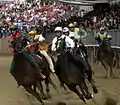 وأدى ذلك إلى تدخل كارلو الأول أنجو ملك نابولي لاحقا وأقوى رجل في إيطاليا. عقب بعض عمليات حرب العصابات، وقّعت أستي على ميثاق تحالف مع بافيا وجنوا وغولييلمو السابع حاكم مونفيراتو. في عام 1274 هُزمت القوات الأستية في كوسانو، ولكنها في الثاني عشر من كانون الأول / ديسمبر عام 1275 انتصرت على الأنجويين في معركة روكافيوني، مُنهيةً أي أمل لكارلو في التوسيع في بييمونتي. في تسعينات القرن الثالث عشر وبعد هزيمة غولييلمو السابع أيضا، صارت أستي المدينة الأقوى في بييمونتي. ولكن الصراع الداخلي من أجل السيطرة على المؤسسات المصرفية والتجارية، سرعان ما قسّم المدينة إلى فصائل. أبرز هؤلاء كان مصرفيو آل سولارو الأقوياء، الذين أعطوا المدينة لروبيرتو أنجو ملك نابولي عام 1314. فاندثرت جمهورية أستي الحرة. عام 1339 استعاد الغيبلينيون المنفيين المدينة، وطردوا آل سولارو ومساعديهم. ولكن في عام 1342 أدى التهديد بهجوم المضاد من آل سولارو إلى أن يسلم الحكام الجدد المدينة إلى لوكينو فيسكونتي حاكم ميلانو. شيدت آل فيسكونتي قلعة، وطوقاً ثانيا من الأسوار لحماية آحياء المدينة الجديدة. عام 1345 هزم الغيبلينيون الأستيون وجوفاني الثاني حاكم مونفيراتو قوات نابولي في معركة غاميناريو. كذلك حكم جوفاني أستي حتى عام 1372، ولكن بعد سبعة سنوات سلّمها مجلس المدينة إلى سلطة غالياتسو الثاني فيسكونتي. وغالياتسو بدوره سلمها إلى لويس فالوا دوق أورليان.