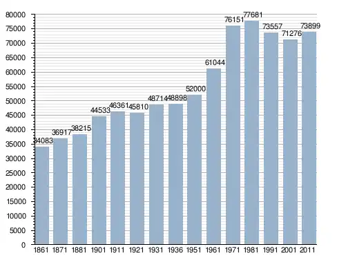 في سنة 1861 بلغ عدد السكان 34٬083 نسمة، وتطور العدد ليصل في سنة 2011 لـ 73٬899 نسمة.