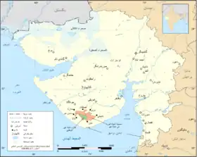 ![]() غابة غير، الموطن الحالي للأسد الآسيوي (اللون الأخضر) | |