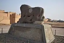 أسد بابل وهو تمثال لأسد عثر عليه في مدينة بابل الأثرية في العراق في سنة 1776 من قبل بعثة حفريات أثرية ألمانية، وهو مصنوع من حجر البازلت الأسود الصلب، حيث يظهر هذا التمثال على شكل أسد يقف على شخص بشري، طوله يبلغ حوالي متران وهو موضوع على منصة طولها حوالي متر عثر عليها بالقرب من مبنى الجنائن المعلقة، رجح بناء هذا التمثال من قبل الملك البابلي الكلداني نبوخذ نصر الثاني (605-562 ق م)، إلا أن شكله ومادة صنعه رجحت العلماء من أنه قد يعود إلى فترة الحيثيون، وعلماء آخرون قالوا أنها من المحتمل أن تكون من الغنائم التي غنمها البابليون أثناء فترة حكم نبوخذنصر الثاني أثناء إغارته على بلاد حاتي، ويرى الباحثون أن تمثال أسد بابل هو تجسيد لقوة بابل وفرض سلطتها على الشعوب.