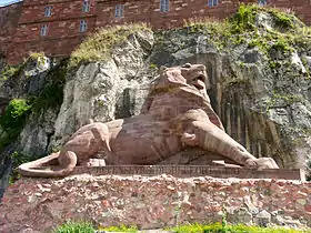 يجسد الأسد شجاعة وبسالة مدينة بلفور وأهلها خلال الهجوم الذي استمر 103 يوماً من قبل بروسيا (من ديسمبر 1870 إلى فبراير 1871)، حيث قام بحماية المدينة السكان (17.000 شخص فقط منهم 3.500 كانوا عسكريين) بقيادة الكولونيل دنفار روشرو الذي كان يحث على هذا الصمود من قرابة 40.000 جندي بروسي غازي.