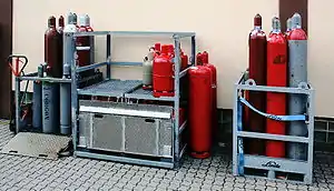 أسطوانة الغاز المضغوط هي أسطوانة معدنية محكمة الإغلاق من الطرفين مليئة بغاز تحت ضغط مرتفع.[1][2][3]