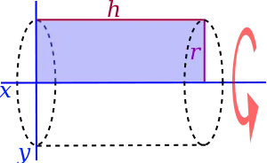 - ويمكن التوصل لنفس النتيجة باعتبار الأسطوانة مجسم دوراني ينشأ عن دوران دالة ثابتة حول المحور السيني