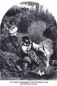أحد القساوسة الفرنسيين يدعى "أوغستين كالمي" (بالفرنسية: Augustine Calmet) كتب عدة مقالات عام 1746 ووثقها بأدلة تؤكد عدم وجود مصاصي الدماء، لكن العديد من قرائه مثل فولتير وغيره انتقدوا ما نشره الراهب وقد فسروه خطأ بأنه بكتاباته يؤكد وجود تلك المخلوقات الأسطورية.[34]
