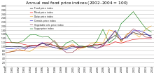 مؤشر FAO لأسعار الغذاء هو مقياس للتغيير الشهري في الأسعار العالمية لسلة أسهم السوق لسلع الغذاء. يشمل المؤشر متوسط مؤشرات سعر خمس سلع محسوب مع المتوسط الوزني لحصة التصديرات لكل مجموعة لسنة 2002 حتى 2004.[9]