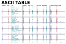 يخصص الأسكي الحروف الاثنين والثلاثين الأولى من أجل حروف التحكم.