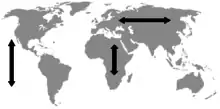 يقول دايموند ان الجغرافية قد أثرت على هجرة البشر، ليس عن طريق جعل السفر أصعب فحسب (تأثير الارتفاع بالأخص)، بل من خلال تأثير المناخ على سفر الحيوانات القابلة للتدجين ومكان المحاصيل التي ستنمو بسهولة بسبب الشمس.