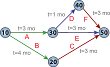 الوقت الأكثر احتمالا يساوي 4 أضعاف الأوقات الأخرى (المتفائل، المتشائم)، وعليه فإن مجموع جميع أوزان الأوقات تساوي 6. عند حساب الانحراف المعياري للمسار الحرج يقسم الفارق بين الوقت المتشائم والمتفائل على 6 باعتبار أن 6 متوسط المدة الزمنية الموزون للمشروع. ويقصد بالانحراف المعياري التشتت عن القيمة الزمنية المتوقعة (بالأيام، بالأسابيع، أو بالأشهر)، فإذا كانت القيمة تُساوي 0 فـتعني أن التقديرات دقيقة والعكس إذا كبرت قيمة الانحراف المعياري زادت درجة عدم اليقين في تقدير الأزمنة.
