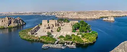 وعندما أصبحت المسيحية الدين الرسمي للبلاد في القرن الخامس الميلادي، تحولت معظم معابد الفراعنة إلى كنائس، فكانت جزيرة فيلة مركزاً لأحد الأسقفيات، مما أدى إلى انتشار المسيحية جنوباً تجاه بلاد النوبة في مصر والسودان.