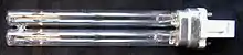 'المقالة الرئيسية:مصباح مبيد للجراثيم' الأشعة فوق البنفسجية المبيدة للجراثيم تقدّم عن طريق مصباح بخار الزئبق الّذي يبعث الأشعة فوق البنفسجية في طول الموجة المبيد للجراثيم. بخار الزئبق ينبعث في 254 نانو متر. العديد من مصابيح الأشعة فوق البنفسجية المبيدة للجراثيم تستخدم محول خاصّ لضمان تدفّق كهربائي منتظم إلى المصابيح بحيث يحافظ على طول الموجة الصّحيح. بما أنّ الأشعة فوق البنفسجية المبيدة للجراثيم تمتلك نطاق تردّدي ضيّق ,لذا فالتّقلبات الكهربائيّة ستعيد إضاءة البيئات الغير فعّآلة.في بعض الحالات ,UVGI مصابيح يمكن تنشيطها بالموجات الدقيقة ,مما يعطيها حياة مستقرّة طويلة جدّاً ومزايا أخرى. هذا يعرف ب'ميكروويف الأشعة فوق البنفسجية.' هناك عدّة أنواع مختلفة من المصابيح المبيدة للجراثيم :-مصابيح الأشعة فوق البنفسجية منخفضة الضّغط توفّر كفاءات عالية (حوالي 35%UVC) لكنّها أقلّ قوّة ,عادةً الكثافة الكهربائية هي 1 واط/سم3.- مصابيح الأملغم للأشعّة فوق البنفسجية هي نسخة عالية القوّة من مصابيح الضغط المنخفض.إنّها تعمل في درجات الحرارة الأعلى ولديها فترة صلاحيّة تصل إلى 16,000 ساعة.كفاءتهم أخفض قليلاً من كفاءة مصابيح الضّغط المنخفض التّقليدية (حوالي 33% من ناتجUVC) والكثافة الكهربائيّة حوالي 2-3 واط/سم3.- مصابيح الأشعة فوق البنفسجية المتوسطة الضغط لديها خط ذروة طيف واسع وواضح وناتج إشعاع عالي لكن كثافة UVC أخفض بحوالي 10% أو أقلّ. عادةً الكثافة الكهربائية هي 30 واط/سم3 أو أكثر. اعتماداً على زجاج الكوارتز المستعمل لجسم المصباح ,مصابيح الضغط المنخفض والأملغم تيعث الضوء في 254 نانو متر و185 نانو متر (للأكسدة). ضوء 185 نانو متر يستعمل لتوليد الأوزون.