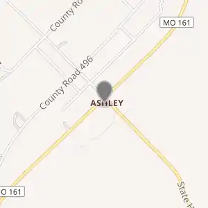 - "صفحة أشلي (ميزوري) في GeoNames ID". GeoNames ID. اطلع عليه بتاريخ 7 مارس 2021. الوسيط
