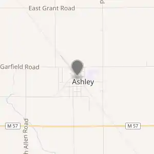 - "صفحة أشلي (ميشيغان) في GeoNames ID". GeoNames ID. اطلع عليه بتاريخ 6 مارس 2021. الوسيط