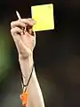 البطاقة الصفراء وتشهر في بعض الرياضات (مثل كرة القدم) للإنذار