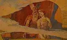وودن وفريغ ينظران من نافذتهما في السماوات نحو نساء الوينيلي دونهما (1905) بريشة إيميل دوبلر.