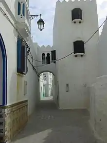 بنيت المدينة العتيقة على شكل مستطيل مقابل للشاطئ، وهي تتكون من خمسة أحياء رئيسية هي: القيسارية (الحي الذي يحتوي على الأسواق) - حومة ابن عياد - حومة المجيمع - حومة القريقية (الحي البرتغالي) والقصبة وهي عبارة عن قلعة كبيرة مستطيلة تواجه شاطئ البحر وتعد النواة الأولى للمدينة وتحتوي على المسجد الجامع والأبراج الأولى التي بنيت خلال القرن الثالث الهجري.[6]