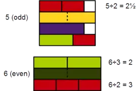 - إذا كان المقسوم زوجياً والمقسوم عليه فردياً سنحصل على عدد زوجي أو عدد كسري.